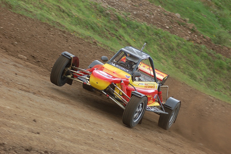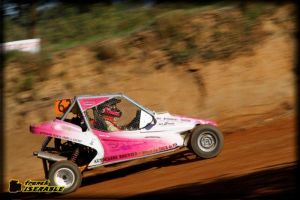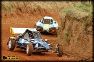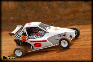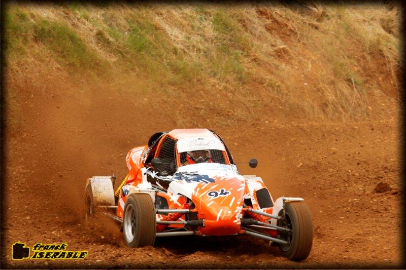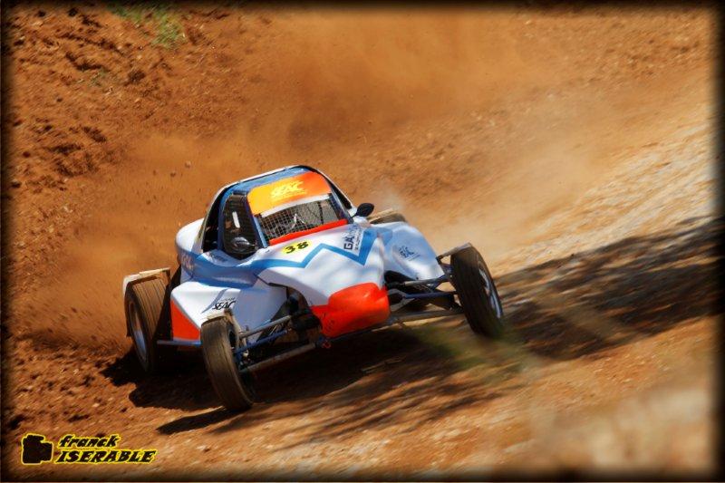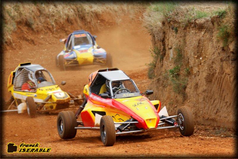 Buggy 1600. Cette confiance a été tout au long du meeting entretenue par leurs performances. Dominant les essais, les qualifications, remportant tous leurs duels, nos trois mousquetaires jouaient sur la corde sensible et nos nerfs en trustant la première ligne de la finale de la division buggys 1600. Malheureusement, le sort en a décidé autrement. On peut toujours chercher des excuses, des raisons à ce résultat mitigé. Propreté plus que limite de la première ligne, mécanique fatiguée après ces longs duels sur une piste difficile sont les principales raisons de leurs défaites. Ne nous en donnons pas la peine de tergiverser, la loi du sport est passé par là et ne conservons que la satisfaction et les sourires de David Anacleto, de Johnny Feuillade et surtout de Germain Boucé. Ce dernier, surprenant, apprend vite la manipulation de cette machine et il prends du plaisir et cela se voit. Quand à notre second Johnny national seule une petite crevaison a quelque peu troublé un meeting géré en permanence aux avant postes. Belle surprise du côté de l'enfant du pays Maxim Rigaudière. Hyper motivé par l'enjeu et par cette superbe acquisition, il se permet en finale C, de passer sa machine sur le toit et de repartir aussitôt. On apprend vite le pilotage à l'européenne du côté du Cantal.